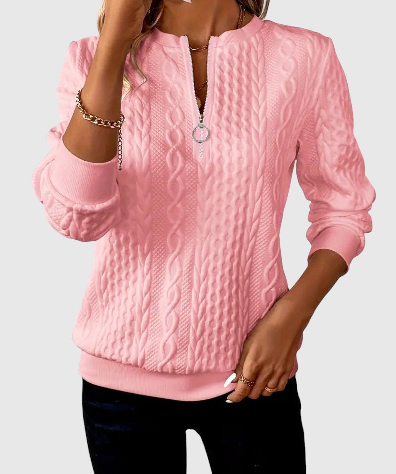 Amalie - Pletený svetr s copánkovým vzorem na zip