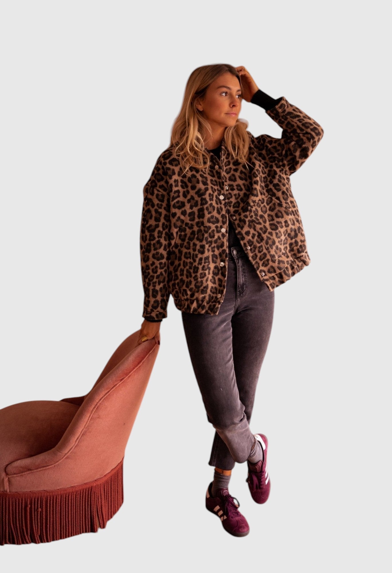 Udělejte odvážný dojem s trendy bundou Charlene, dokonalou kombinací módy a pohodlí. Tento stylový kousek s leopardím potiskem je ideálním doplňkem vašeho šatníku. Ať už zvyšujete úroveň ležérního vzhledu nebo děláte módní prohlášení, bunda Charlene se hodí na jakoukoli příležitost. Je lehká, pohodlná a univerzální. Must-have pro módní ženy!
