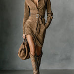 Nadčasový styl: midi šaty s klopou z semiše