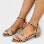 • Design: Zlaté akcenty, otevřené, nastavitelné řemínky