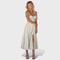 Šaty Kiana představují dokonalý pohodlně-nóbl kousek – korzetový živůtek lichotí pasu, zatímco splývavá sukně ladně zdůrazňuje ženské křivky. Vzdušný materiál s jemnou strečovou příměsí se postará o to, abyste se cítila skvěle nejen při formálních příležitostech, ale i během odpolední kávy nebo večeře s přáteli.